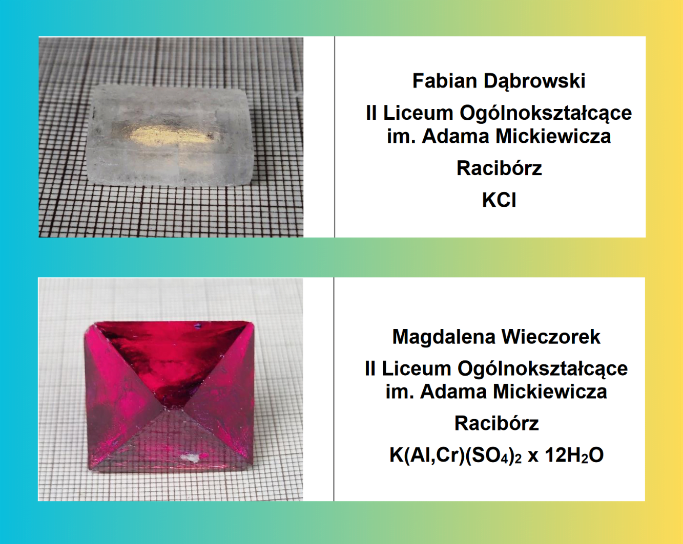 W XI Edycji Ogólnopolskiego Konkursu Wzrostu Kryształów organizowanego przez Wydział Fizyki Uniwersytetu Śląskiego nasi uczniowie: Magdalena Wieczorek i Fabian Dąbrowski zostali Wyróżnionymi...