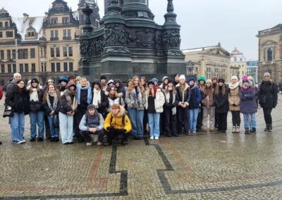 Dnia 1 grudnia 2023 roku klasy: 1D, 2D oraz 2P wyruszyły na wycieczkę do Drezna. Po długiej 7- godzinnej podróży dotarliśmy do pierwszej części naszej wycieczki, jaką był Plac Teatralny, na którym po krótce poznaliśmy historię Drezna za czasów Augusta II Mocnego. Następnie, udaliśmy się w kierunku Pałacu Zwinger, który zachwycił nas niezwykłą różnorodnością. Zwiedziliśmy Salon Matematyczno-Fizyczny, gdzie podziwialiśmy zabytkowe linijki, globusy i inne przyrządy, którymi posługiwano się w baroku. Później, przeszliśmy do Galerii Dawnych Mistrzów, w której oglądaliśmy elitarne obrazy włoskiego renesansu. Kolejnym punktem naszej wycieczki było Muzeum Porcelany, obfitujące w piękne rzeźby zapierające dech w piersiach. W drodze na „luźniejszą” część wycieczki obejrzeliśmy ponad 100-metrowy obraz przedstawiający władców Saksonii. Po części kulturowej przyszedł czas na główny punkt wycieczki, jakim był Jarmark Bożonarodzeniowy. Nowy i Stary Rynek obfitowały w wiele charakterystycznych dla Drezna przekąsek bożonarodzeniowych takich jak strucle czy owoce w czekoladzie. Powracając do autobusu, obejrzeliśmy jeszcze kilka perełek kultury i sztuki oraz wstąpiliśmy na jeszcze jeden jarmark, który pięknem nie odstawał od dwóch pozostałych. Z Drezna wyjechaliśmy około godziny 20. Tę wycieczkę zapamiętamy na bardzo długi czas.