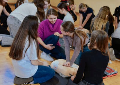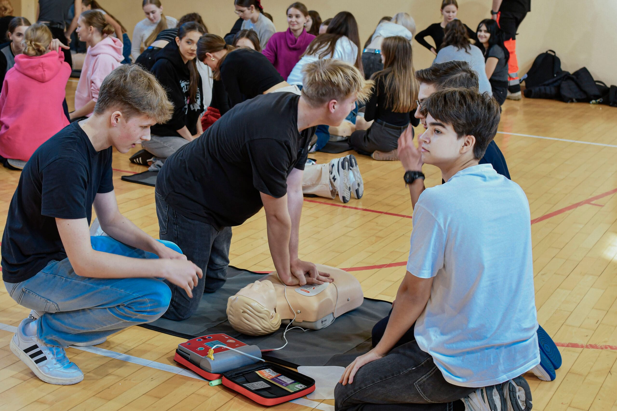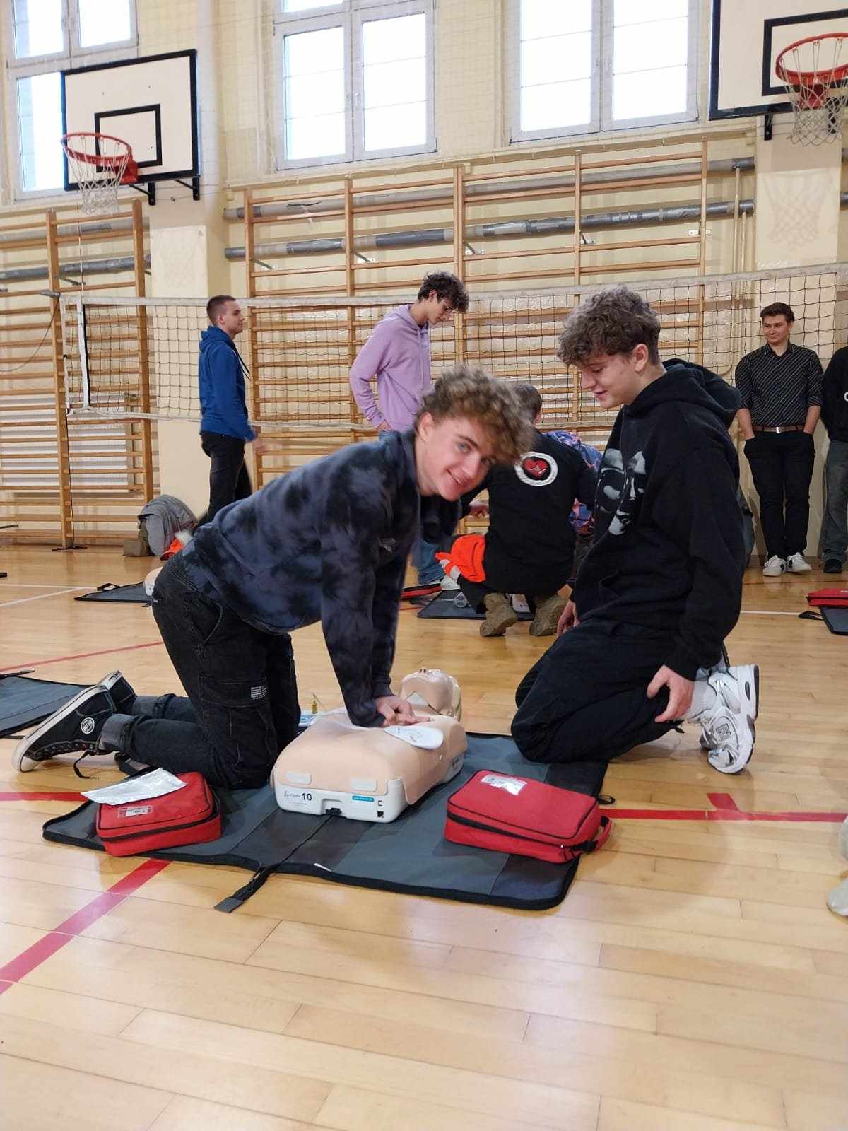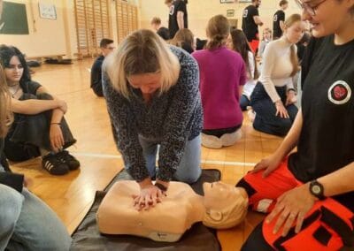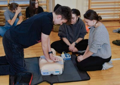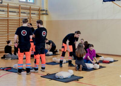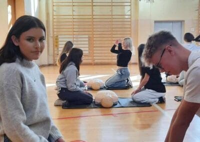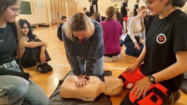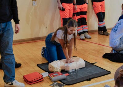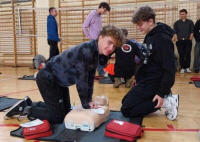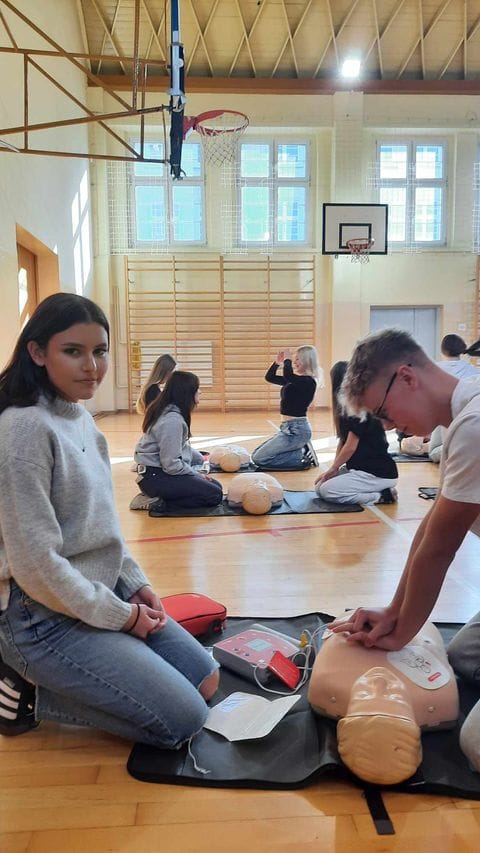 16 października w ramach Europejskiego Dnia Przywracania Czynności Serca, uczniowie naszej szkoły wzięli udział w warsztatach nauki pierwszej pomocy. Zajęcia prowadzili studenci Koła Naukowego Medycyny Stanów Nagłych i Katastrof działającego przy Śląskim Uniwersytecie Medycznym w Zabrzu. Uczniowie przećwiczyli resuscytację na kilkunastu fantomach pod okiem instruktorów, a dokładnie w samo południe zaczęli bić rekord w jednoczesnym prowadzeniu resuscytacji krążeniowo – oddechowej przez jak największą ilość osób, w ramach Ogólnopolskiej Akcji Fundacji Wielkiej Orkiestry Świątecznej Pomocy. Bicie rekordu odbyło się w szkole pierwszy raz i mamy nadzieję, że wejdzie na stałe w zakres naszych działań. Nie obylibyśmy się bez zaangażowania naszego absolwenta Jurka Jędrzejewskiego, studenta drugiego roku ratownictwa, który zajął się organizacją wydarzenia.
