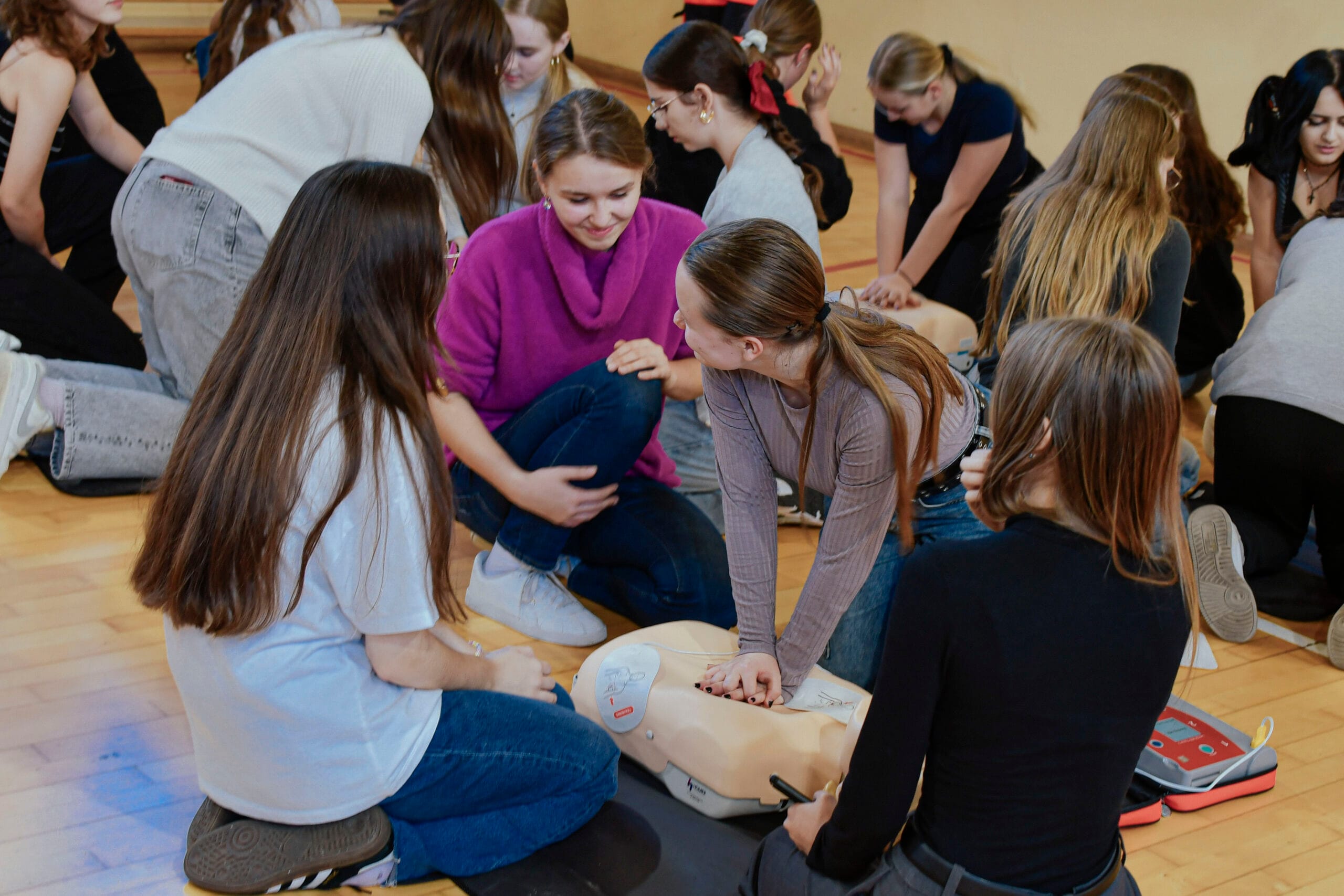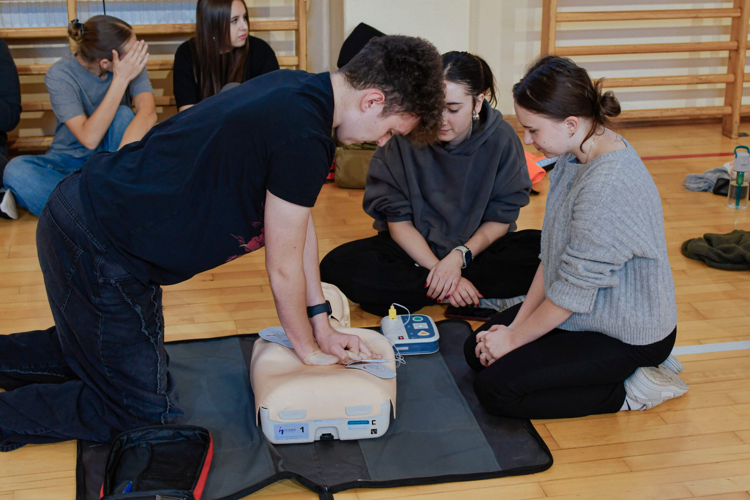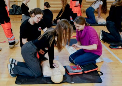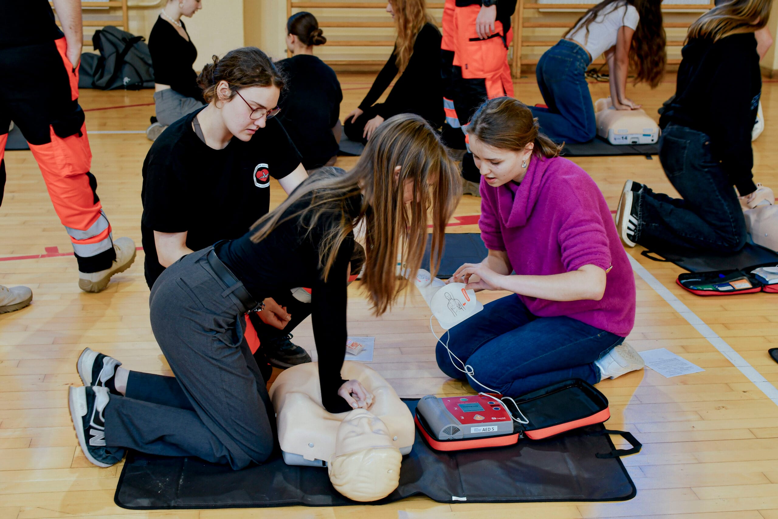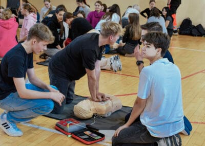 16 października w ramach Europejskiego Dnia Przywracania Czynności Serca, uczniowie naszej szkoły wzięli udział w warsztatach nauki pierwszej pomocy. Zajęcia prowadzili studenci Koła Naukowego Medycyny Stanów Nagłych i Katastrof działającego przy Śląskim Uniwersytecie Medycznym w Zabrzu. Uczniowie przećwiczyli resuscytację na kilkunastu fantomach pod okiem instruktorów, a dokładnie w samo południe zaczęli bić rekord w jednoczesnym prowadzeniu resuscytacji krążeniowo – oddechowej przez jak największą ilość osób, w ramach Ogólnopolskiej Akcji Fundacji Wielkiej Orkiestry Świątecznej Pomocy. Bicie rekordu odbyło się w szkole pierwszy raz i mamy nadzieję, że wejdzie na stałe w zakres naszych działań. Nie obylibyśmy się bez zaangażowania naszego absolwenta Jurka Jędrzejewskiego, studenta drugiego roku ratownictwa, który zajął się organizacją wydarzenia.